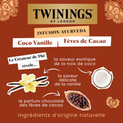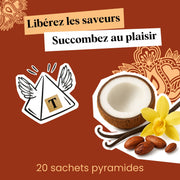 Le Créateur de Thés révèle la saveur exotique de coco, la saveur délicate de la vanille et le parfum chocolaté des fèves de cacao.