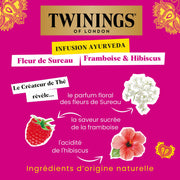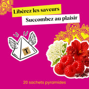 Le Créateur de Thés révèle le parfum floral des fleurs de Sureau, la saveur sucrée de la framboise et l’acidité de l’hibiscus.