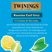 Le Créateur de Thé révèle des feuilles de thés noir de Chine et d’Inde associées aux notes intenses de bergamote et citron. Un mélange aussi parfumé que coloré grâce aux pétales de bleuet et de calendula.