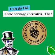 Le Créateur de Thé révèle la délicatesse du thé vert de Chine et d’Inde et la fraîcheur des feuilles de menthe verte.