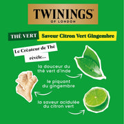 Le Créateur de Thé révèle la douceur du thé vert d'Inde, le piquant du gingembre et la saveur acidulée du citron vert.